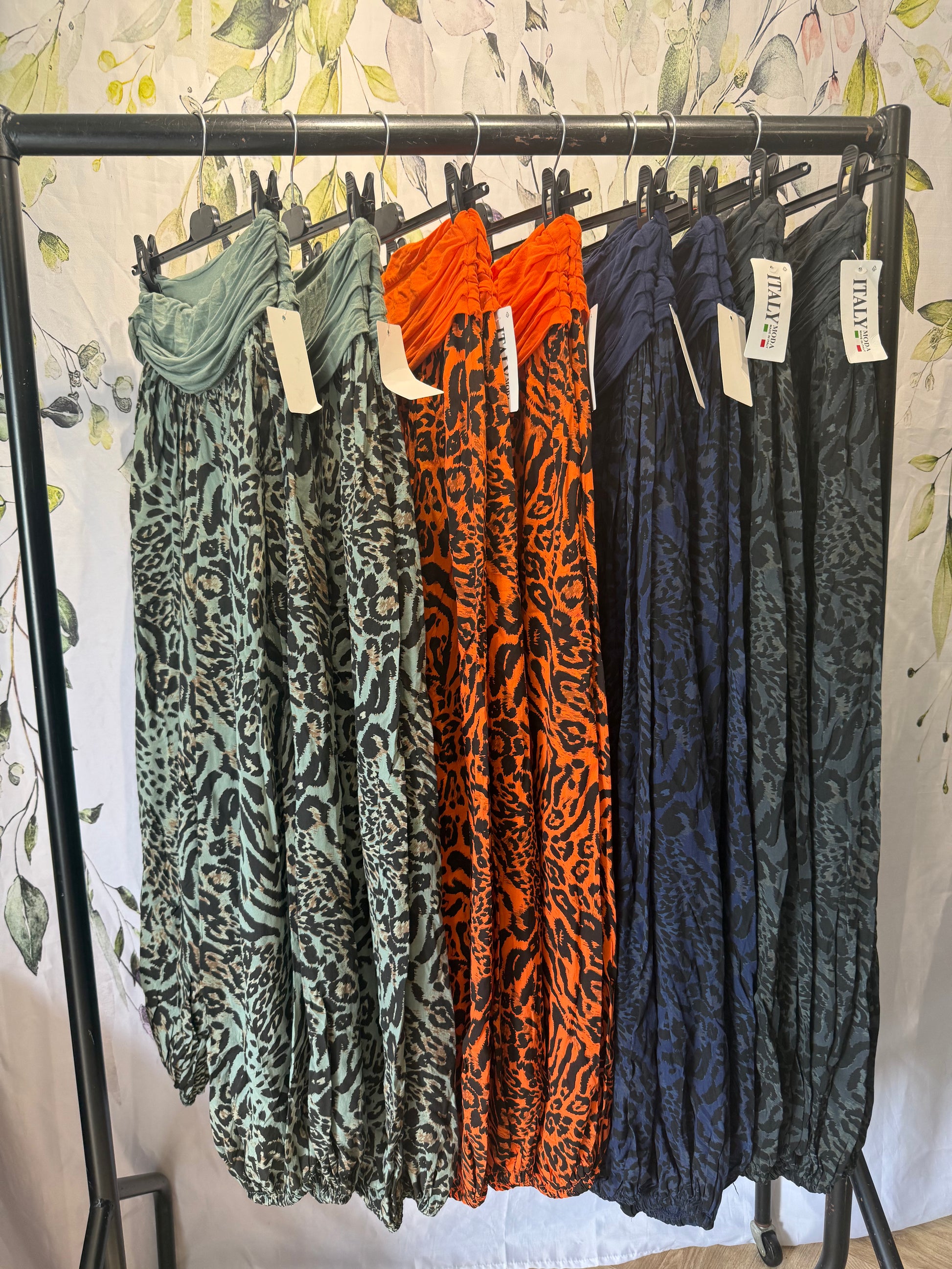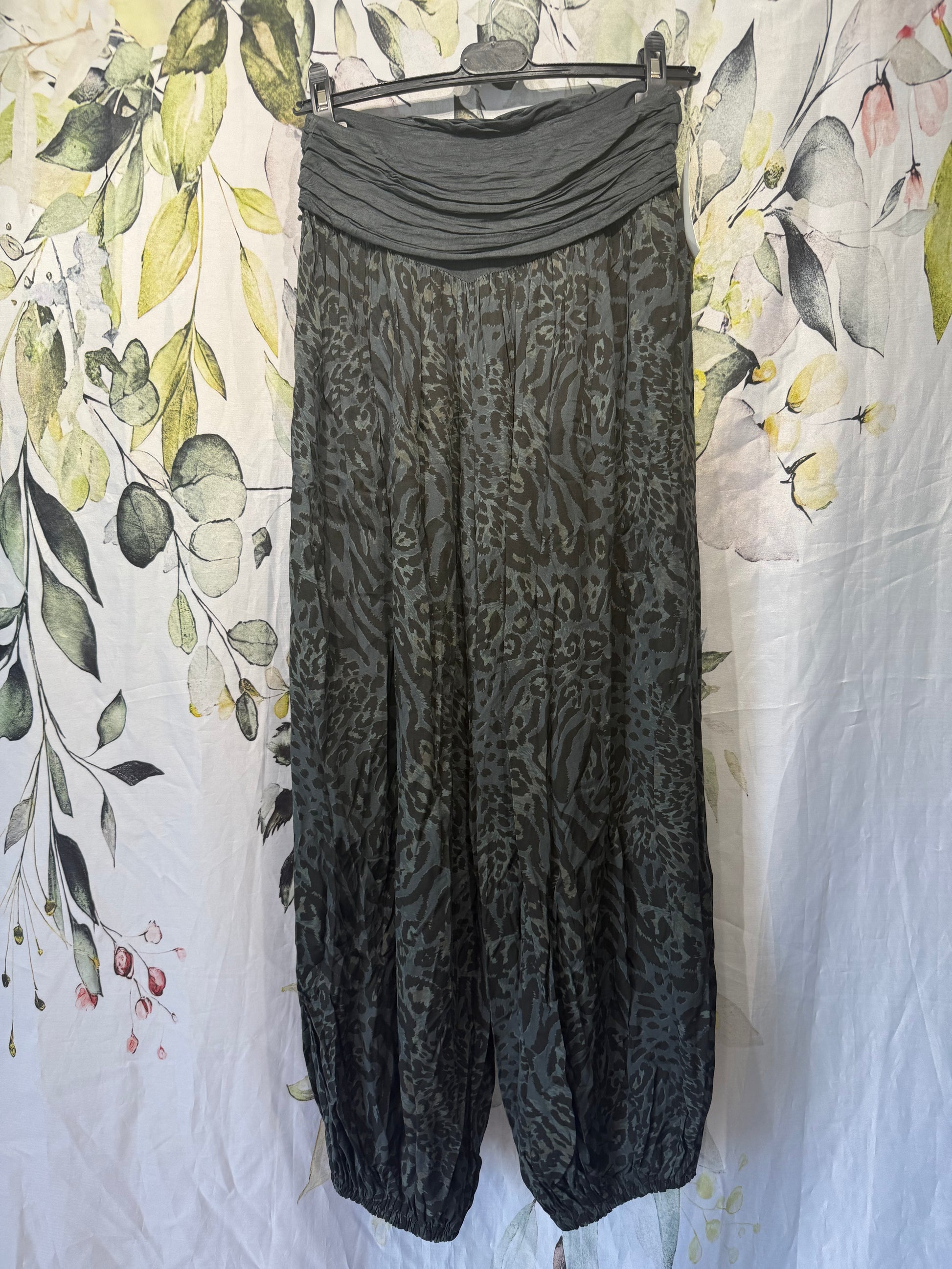 Harem style pants with elasticated jersey waistband and soft elasticated cuff