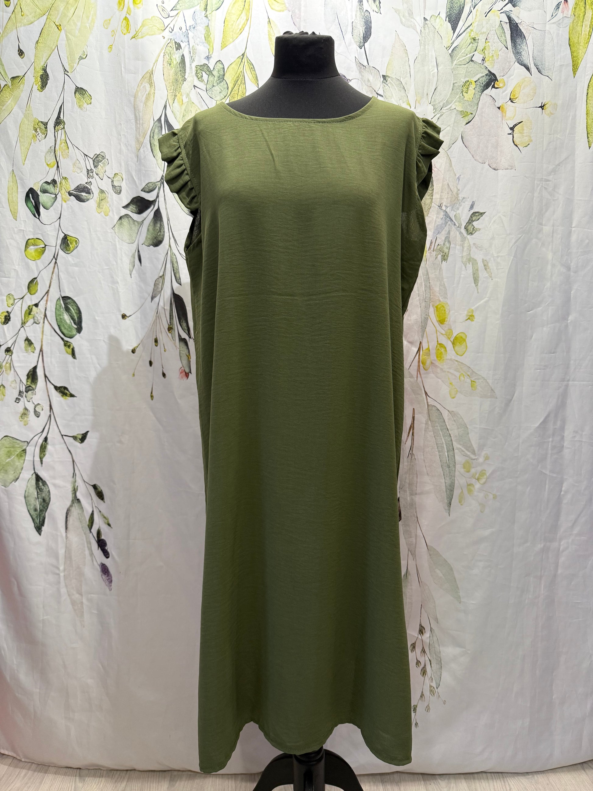 Effortlessly stylish and comfortable, our button back dress has a loose fit and mid length design. Complete with frill sleeve detail and a button back, this dress is classic elegance with a touch of modern charm. Perfect for any occasion, this dress is a must-have for your wardrobe.