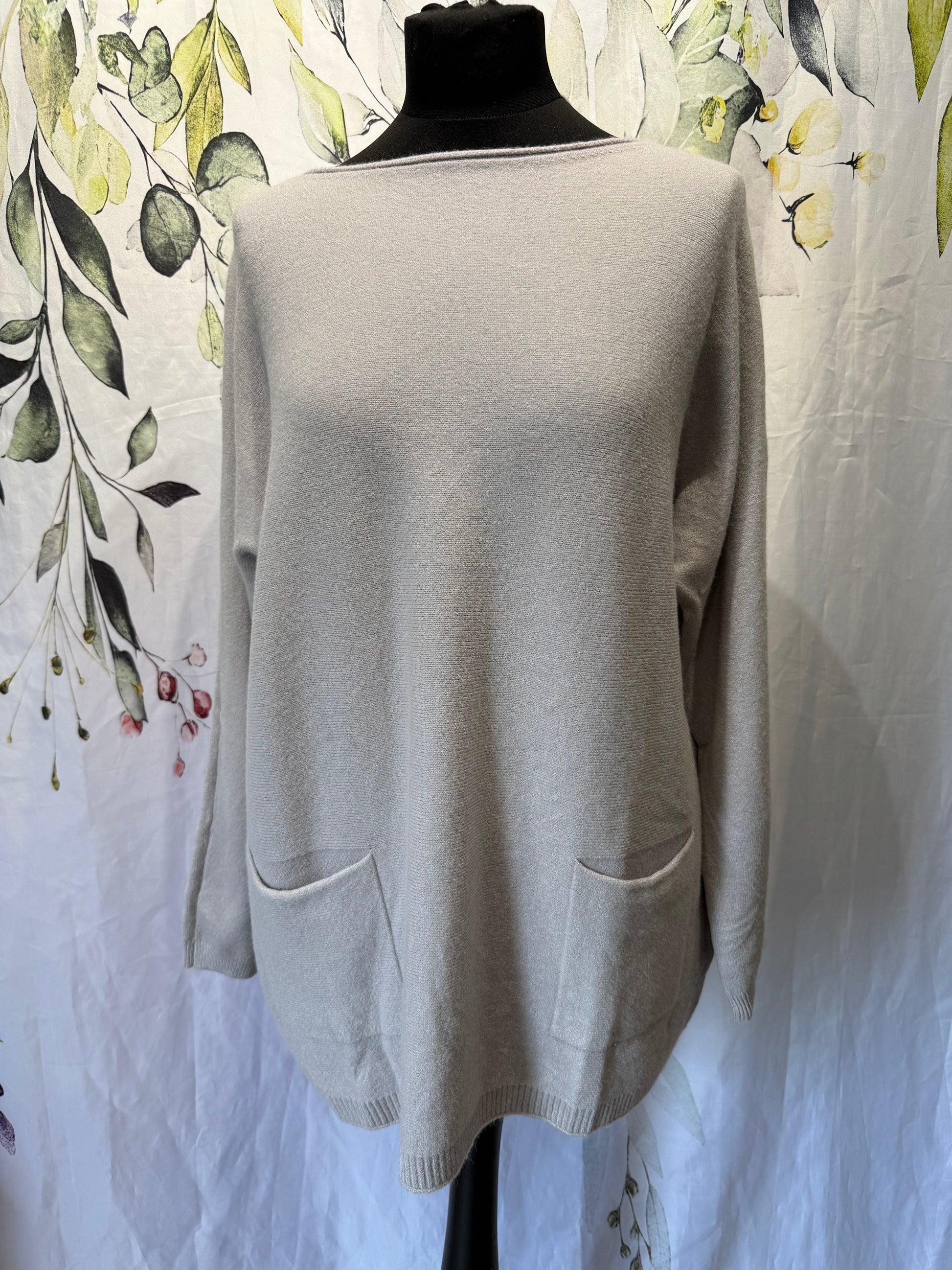 Super soft knit with beautiful button back and bow detail. Front pockets and longer length too