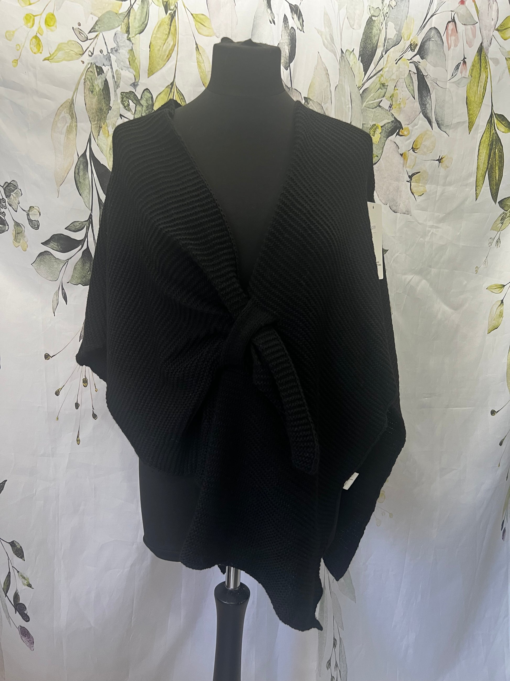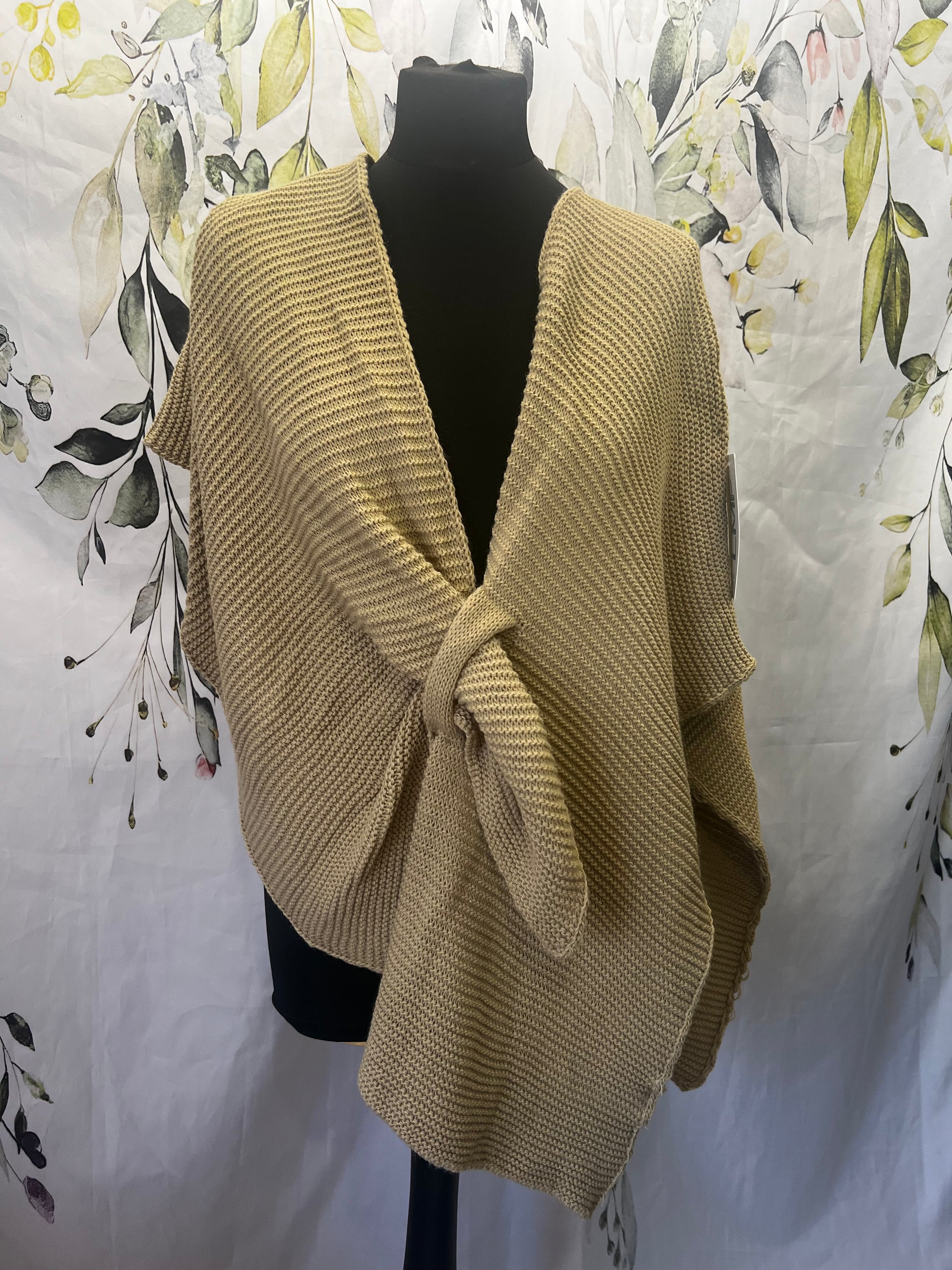 Super soft knitted wrap with pull through closing. Perfect to layer up.