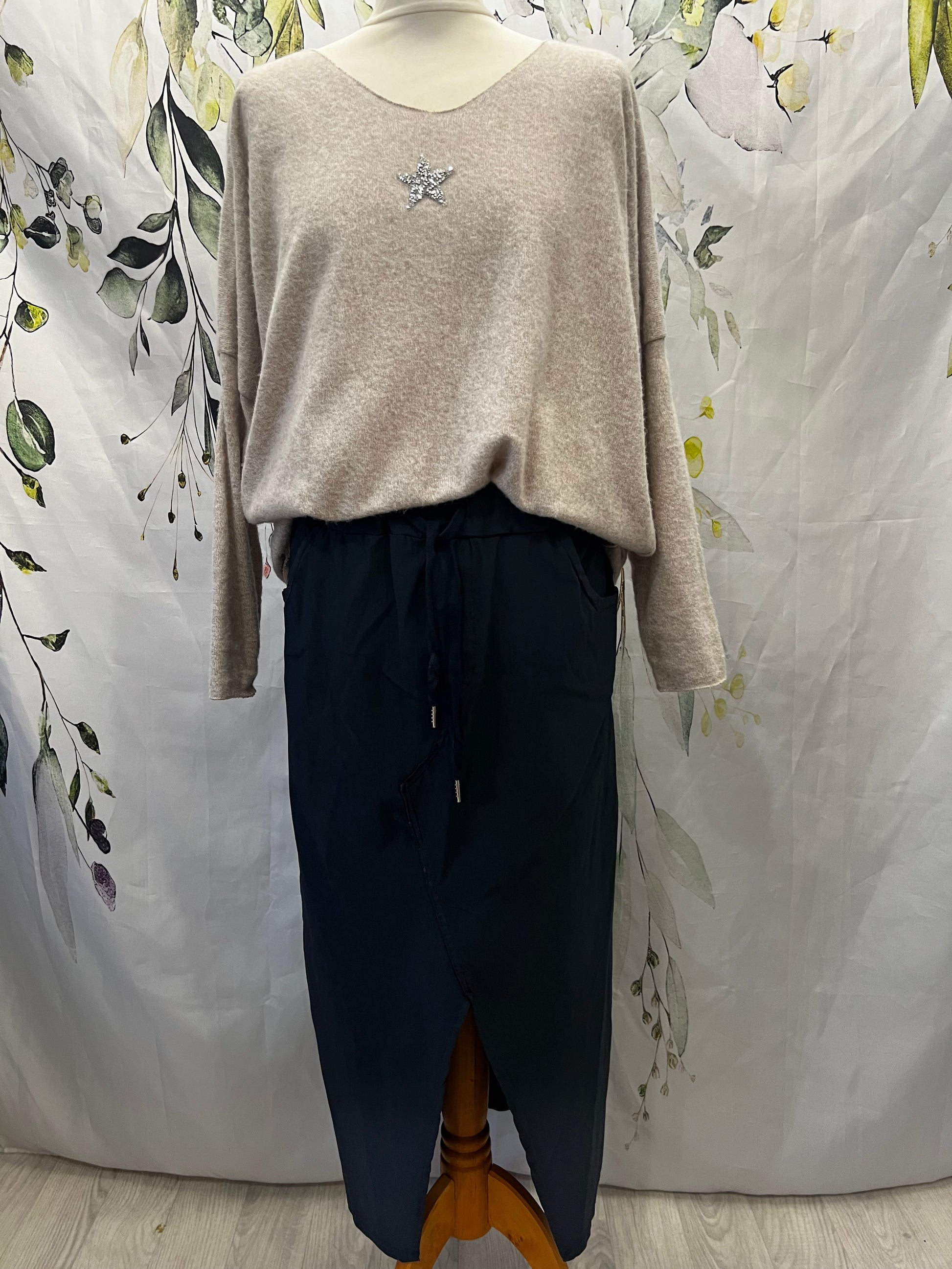 Super stretch magic skirt with front split and all important pockets too!