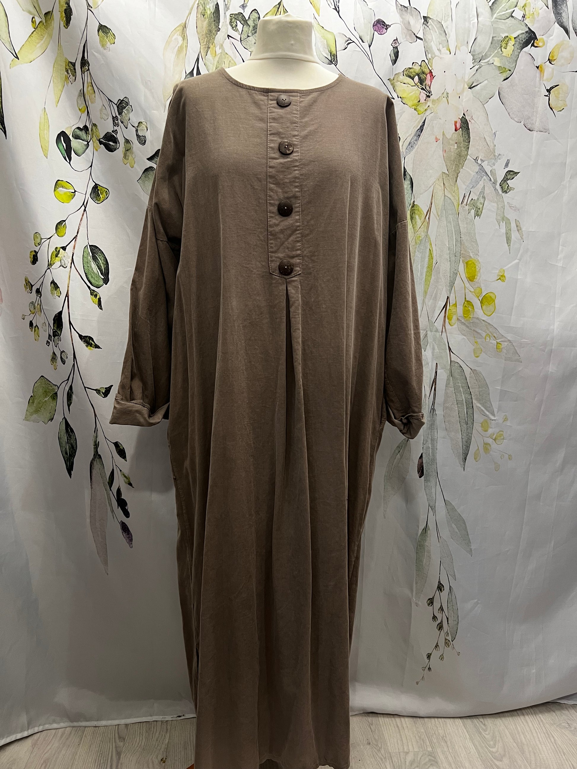 Longer length, buttery soft, needlecord dress with side splits and pockets too.