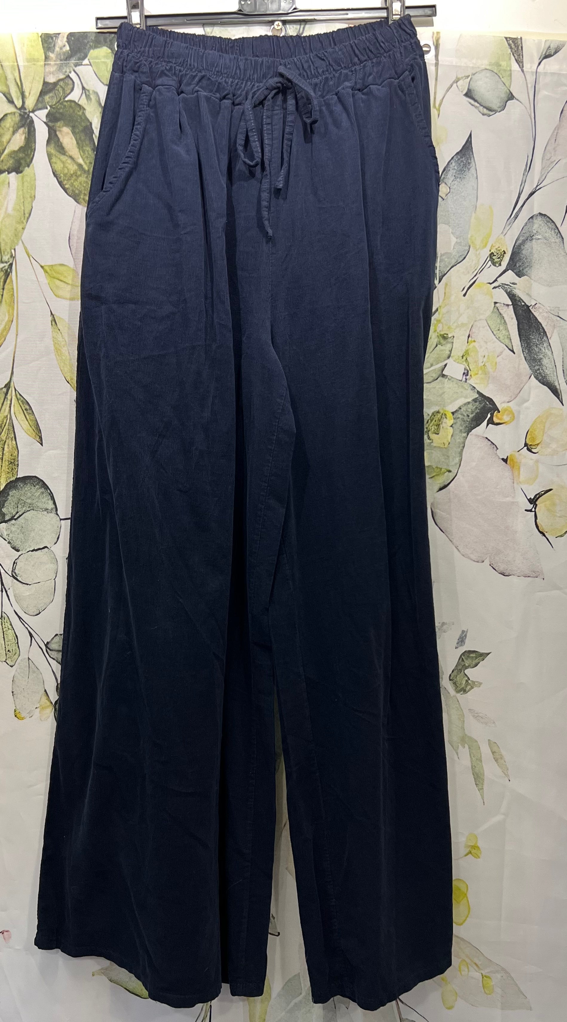 Wide leg, palazzo style trousers in soft needlecord. Elasticated waist and pockets too.