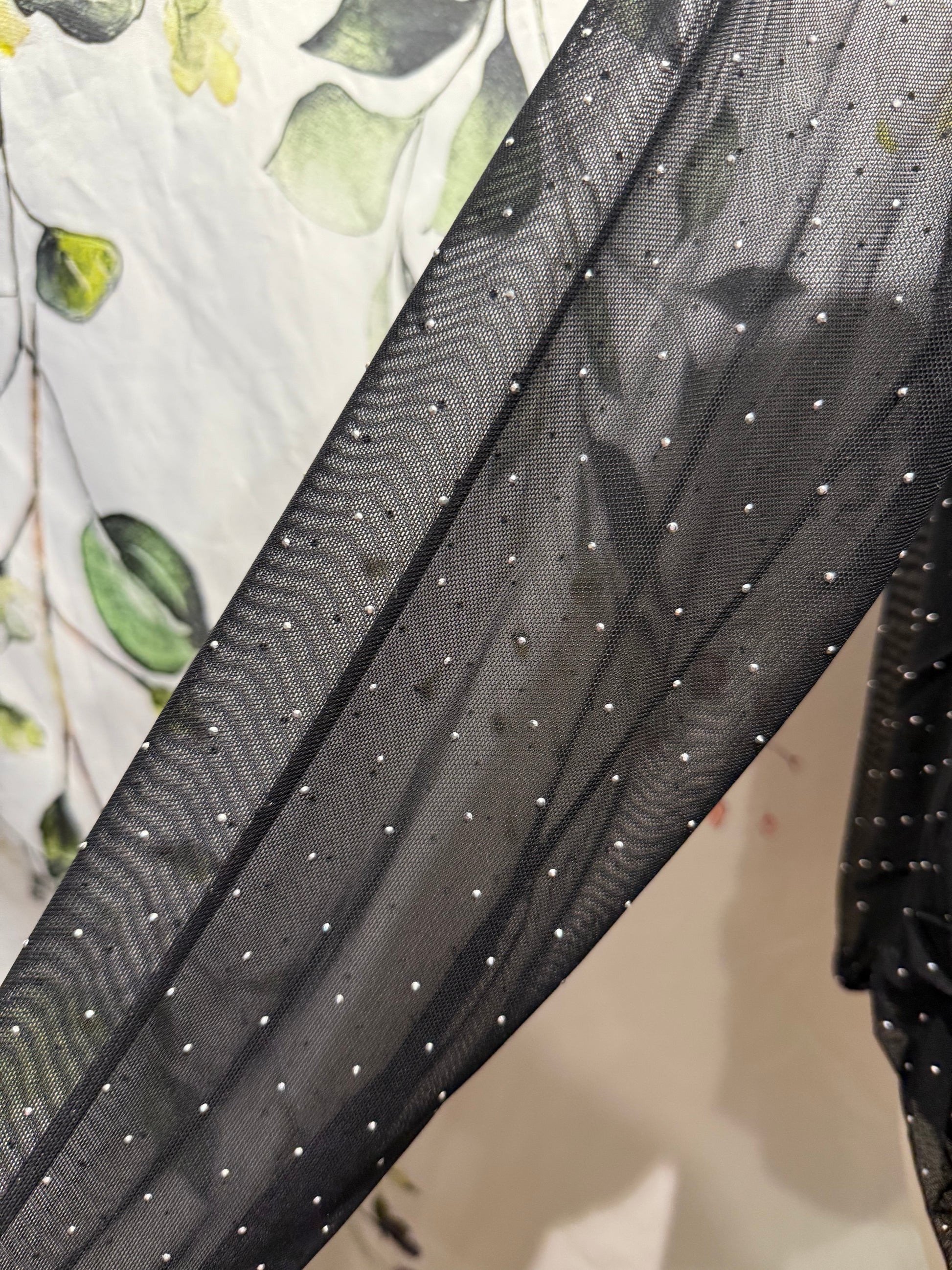 The most beautiful top with sheer sleeves and rhinestone sparkle.
