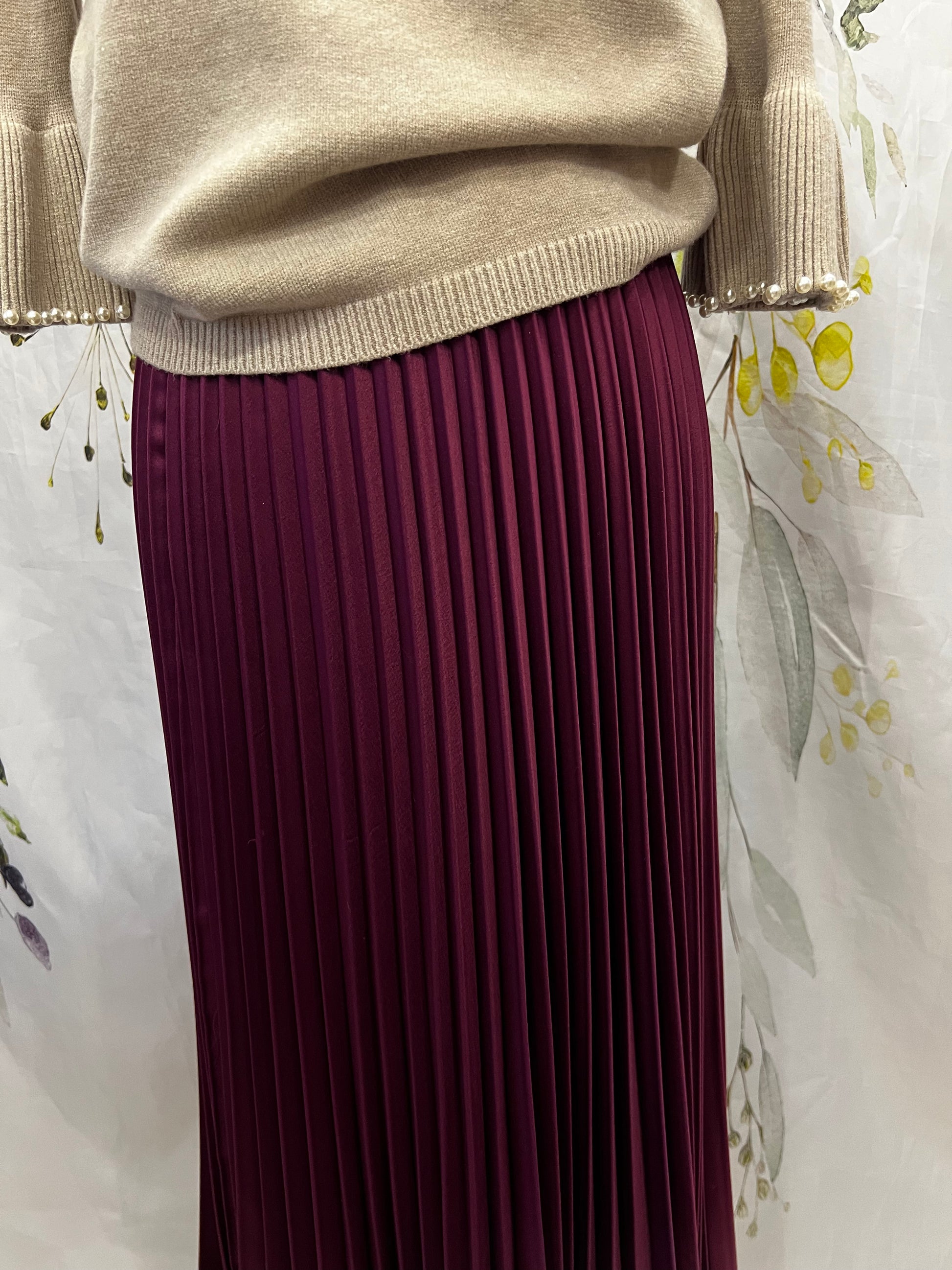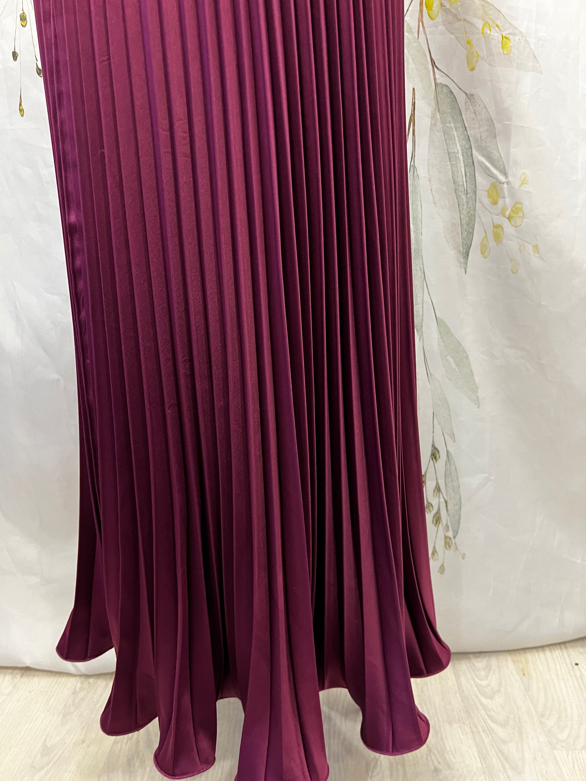 This Satin Pleated Skirt features a gorgeous swishy look, with a stylish fluted hem and maxi length. Made from luxurious satin fabric, this skirt is perfect for adding a touch of elegance and sophistication to any outfit. Its pleated design allows for movement and flow, making it a versatile choice for any occasion.