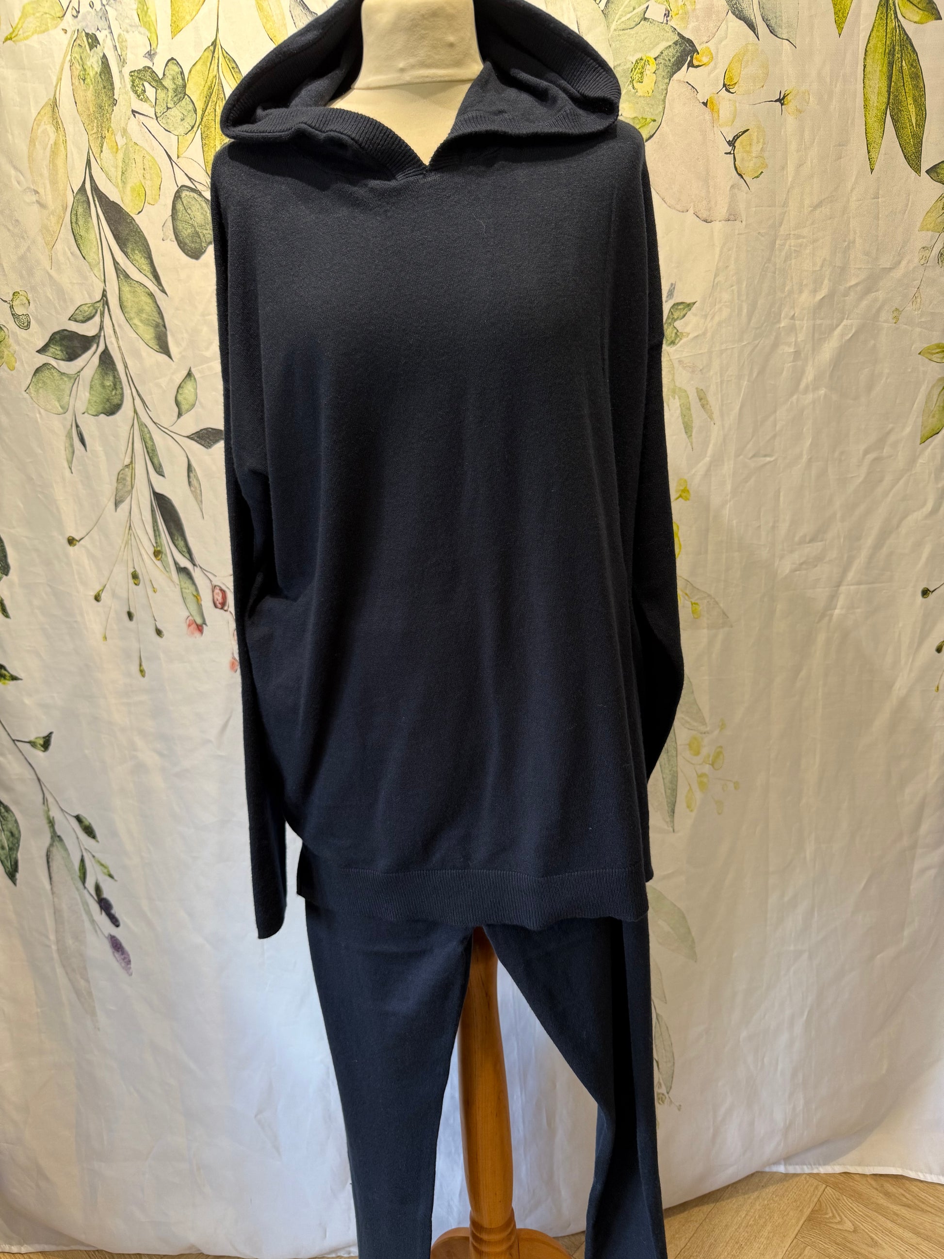 An oversized soft and stretchy knitted hoodie and legging two piece lounge set with ribbed star back detail