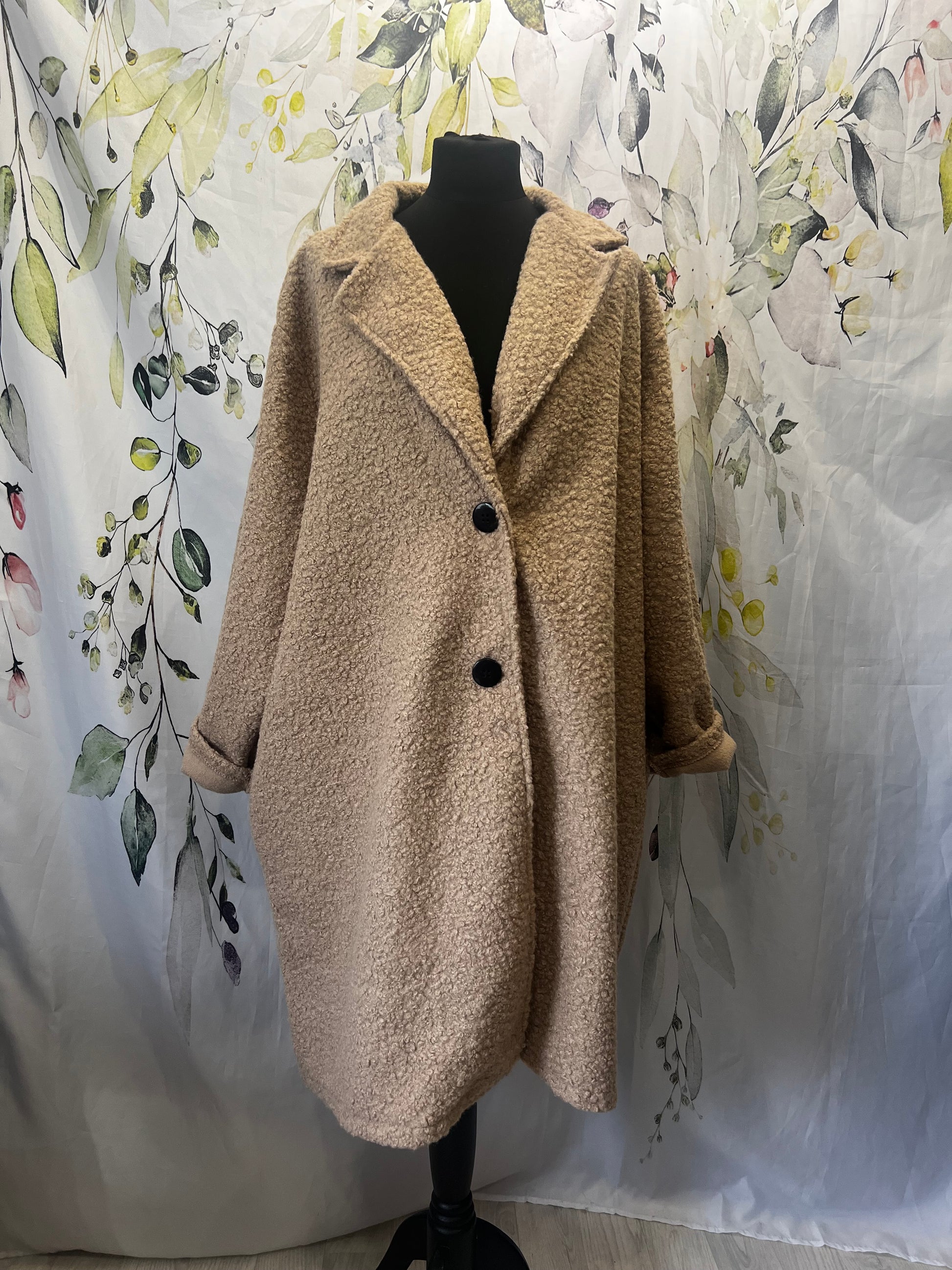 Super snuggly, oversized coat with 2 buttons and pockets too.