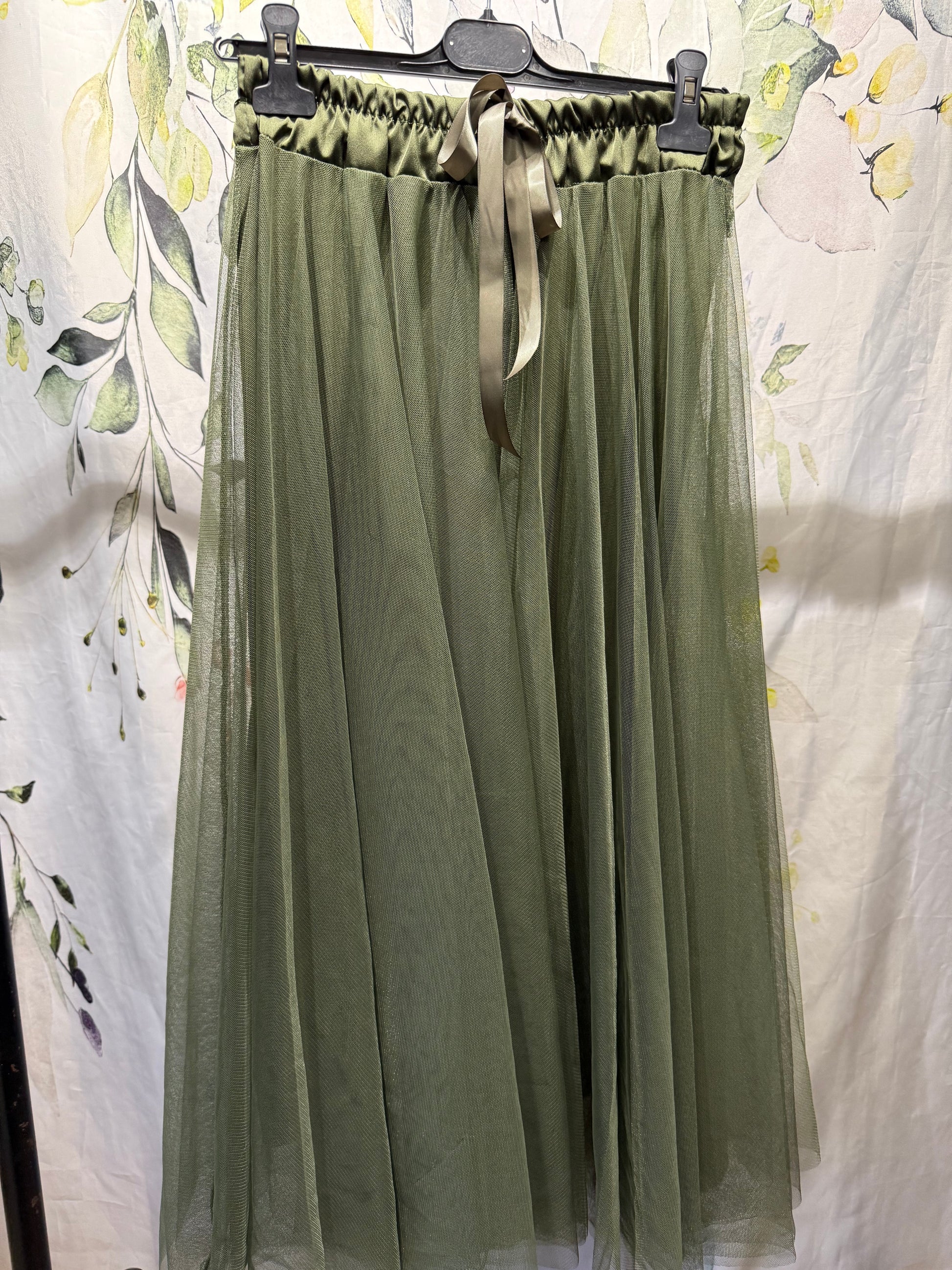 Gorgeously full skirt in plain tulle with a satin stretch underskirt.