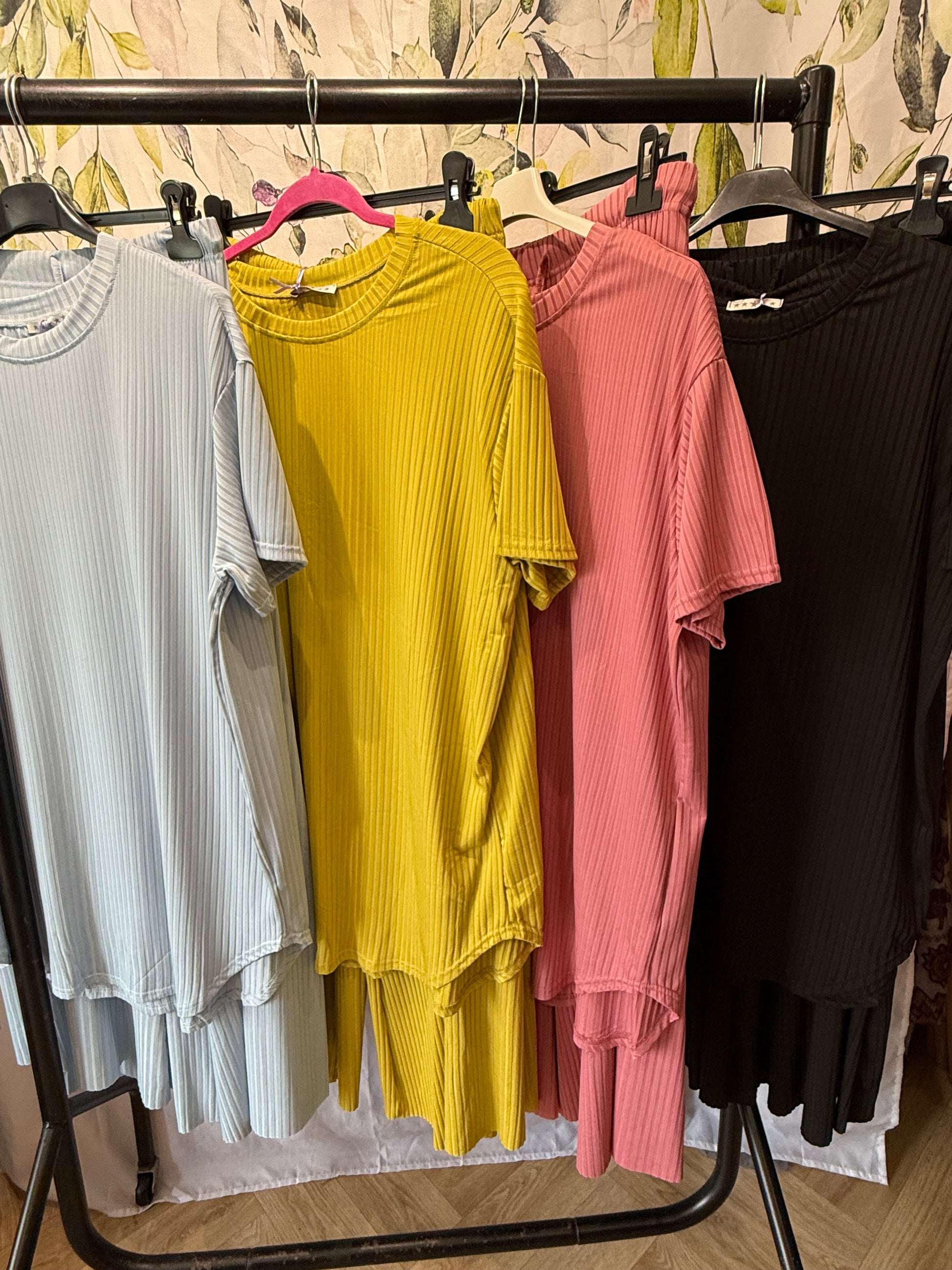 Wide leg trousers and longer length tshirt in easy care, comfy wear stretch fabric.